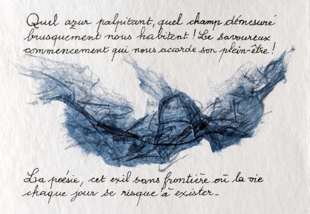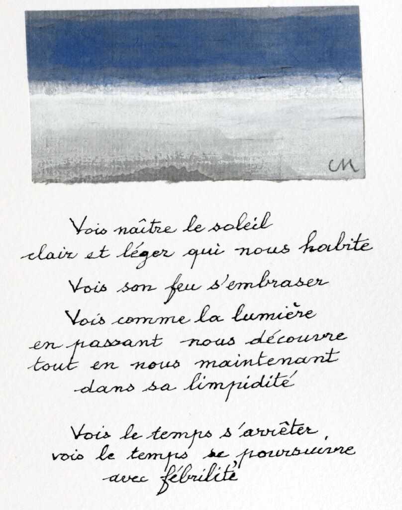 Derrière les paroles adressées à l'aimée, si présente dans les œuvres des années 1970, derrière les paysages vibrants des Bondissantes Alpilles ou « le pays de pauvreté » de l’Ardèche, derrière le difficile partage des souvenirs et des rêves qui manquent de se confondre avec l’inspiration, derrière la mer et la nuit, hostiles ou fécondes, derrière la lumière, la neige, les lignes et les ombres qui animent l’espace, derrière le passage éclairé et « les appels auxquels tu n'as pas répondu » (Ciels de terre), ce sont toujours l'inspiration poétique, sa lumineuse fulgurance, ainsi que la naissance du poème qui sont explorées, approchées, circonscrites par leur subtile mise en abyme imagée.